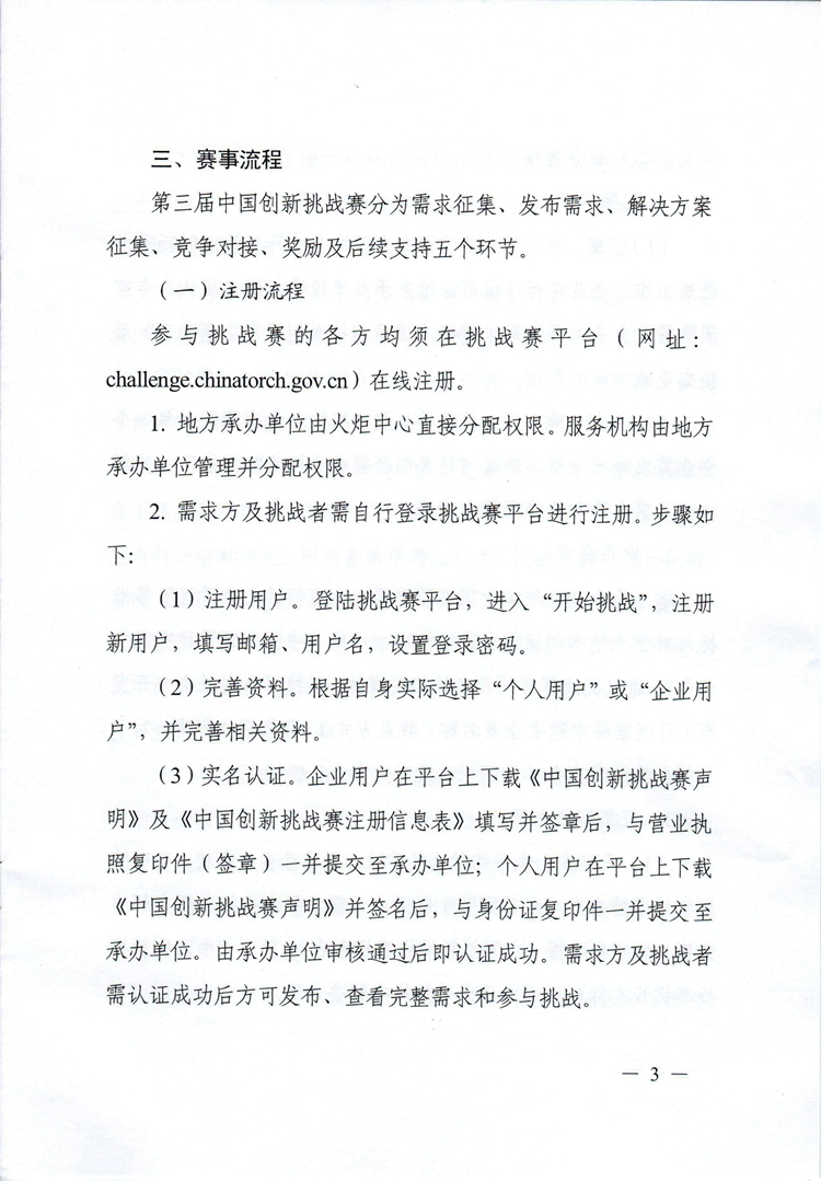 科技部關于舉辦第三屆中國創新挑戰賽的通知