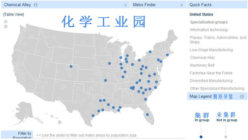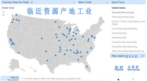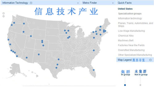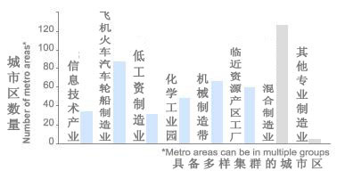 大約2/3(237個(gè))的美國(guó)城市區(qū)有明顯的工業(yè)集群特征,主要可歸類(lèi)于六大集群。