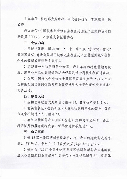 關于召開第三屆國家高新區生物醫藥產業集群協同創新工作會的通知