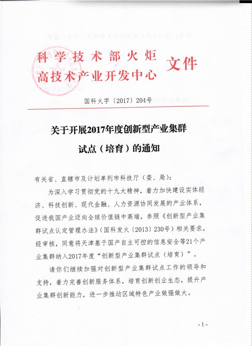 關于開展2017年度創新型產業集群試點(培育)的通知