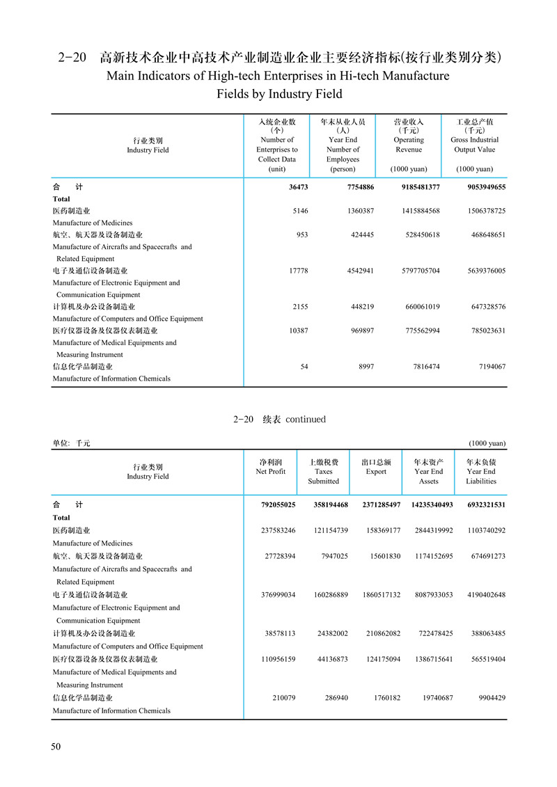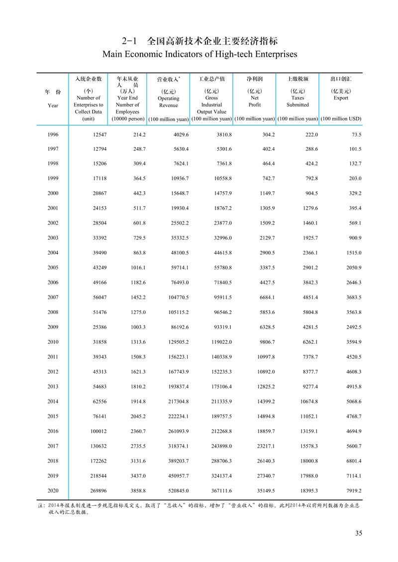 2020年全國(guó)高新技術(shù)企業(yè)主要經(jīng)濟(jì)指標(biāo)