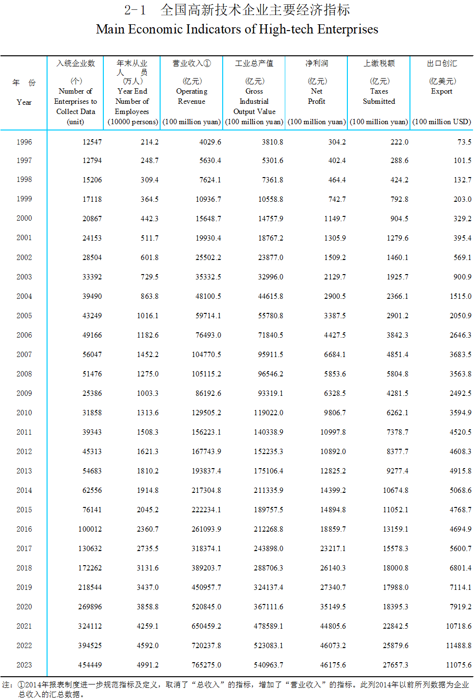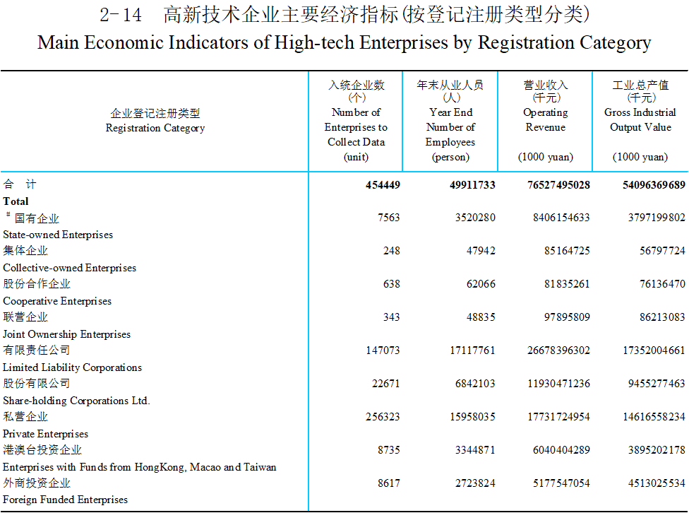 2023年全國高新技術(shù)企業(yè)主要經(jīng)濟(jì)指標(biāo)